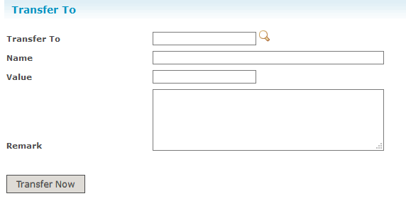 4. Type in the member (receiver) you wish to transfer to and click Transfer Now button. Value input is the amount you wish to transfer.